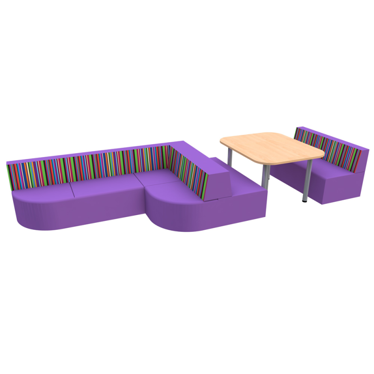 This neat pack is ideal for creating reading areas in libraries as well as self-contained breakout areas or intervention spaces. It includes a generously-sized work table and comfortable Revolve seating upholstered in your choice of leatherette or Silvertex and one of our unique accent fabrics for a really funky look.