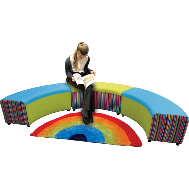 Perfect for circle time or informal group work, this popular seating set includes three Buzz Curve seats and an Over the Rainbow rug. Arrange the seats in a semi-circle or serpentine shape, or split them up to provide comfy places to read around the library.