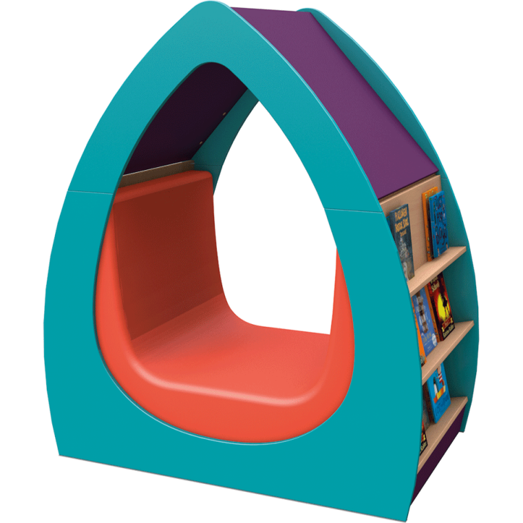 A super-cosy reading den with external shelves and a comfy scoop seat where children will love to snuggle up with their favourite book.
