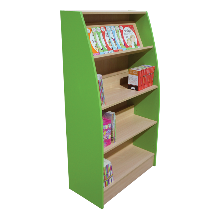 Customise your shelving with header panels and optional graphics or add extra space for larger picture books with drop-in kinderboxes.