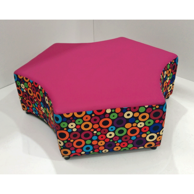 Our comfy upholstered Stem seat has 3 flat sides and can be placed between double-sided shelving to link up the units and provide places to sit and read.