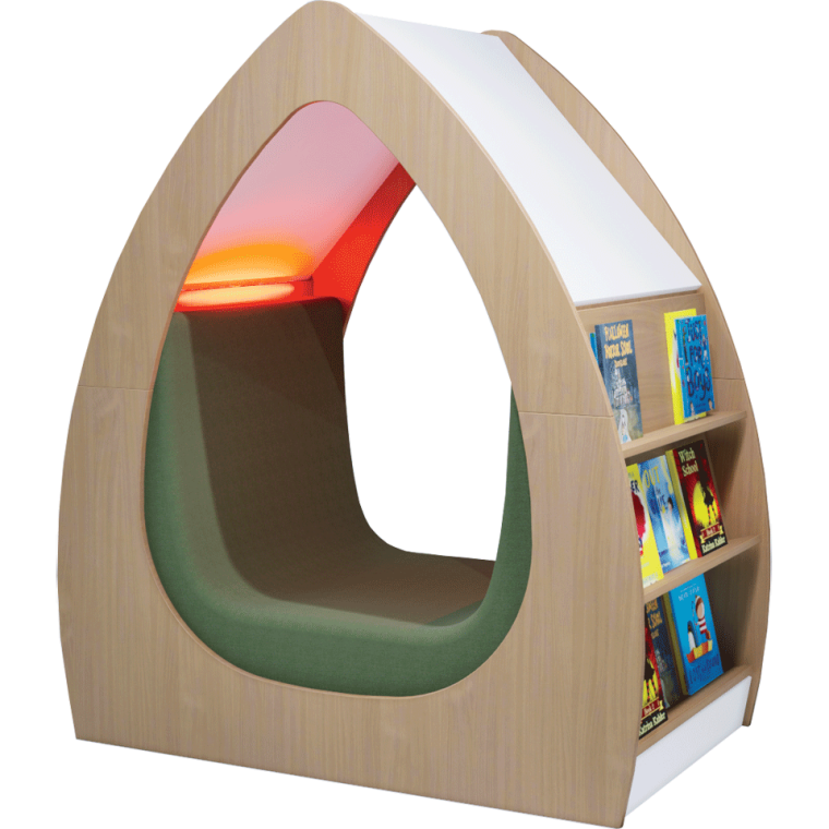 Our Leaf Cocoon 2 is now available in our new soft colours and comes with colour changing USB rechargeable LED lights. It offers a calming and soothing nook where children can relax.