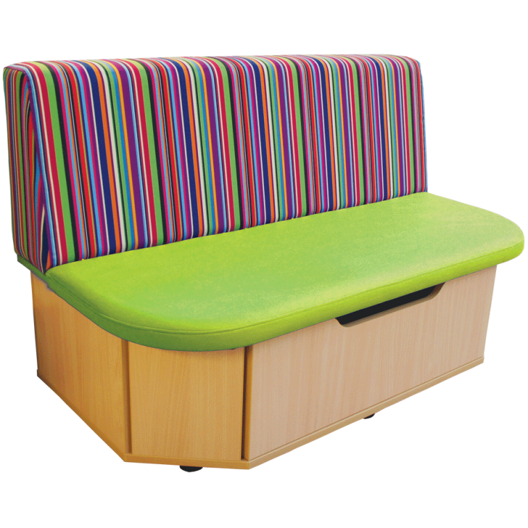 Our colourful upholstered storage bench looks great in any setting and can seat at least 2 children in comfort. It has the added bonus of a drawer in the base where books or toys can be stored, making it ideal for libraries or classrooms where space is limited.