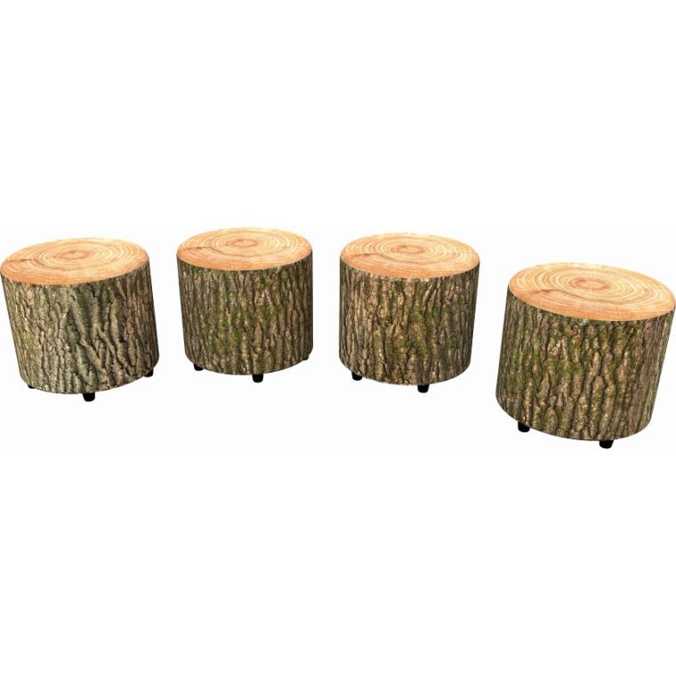 Featuring our realistic bark and wood print fabric, this set of 4 soft upholstered Tree Stump drum seats with bring a bit of woodland magic to your library. Also available to buy as individual seats.